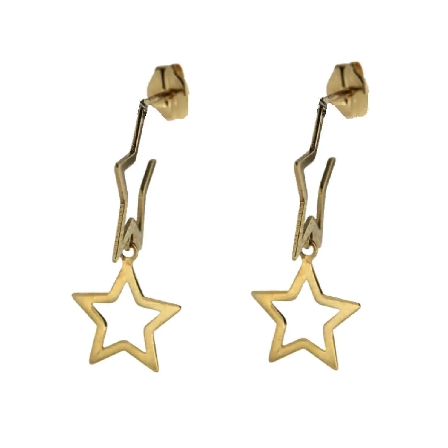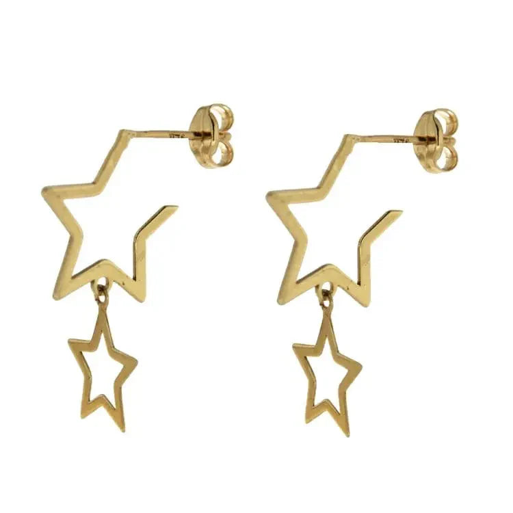 Double Dangle Star Solid Gold Earrings