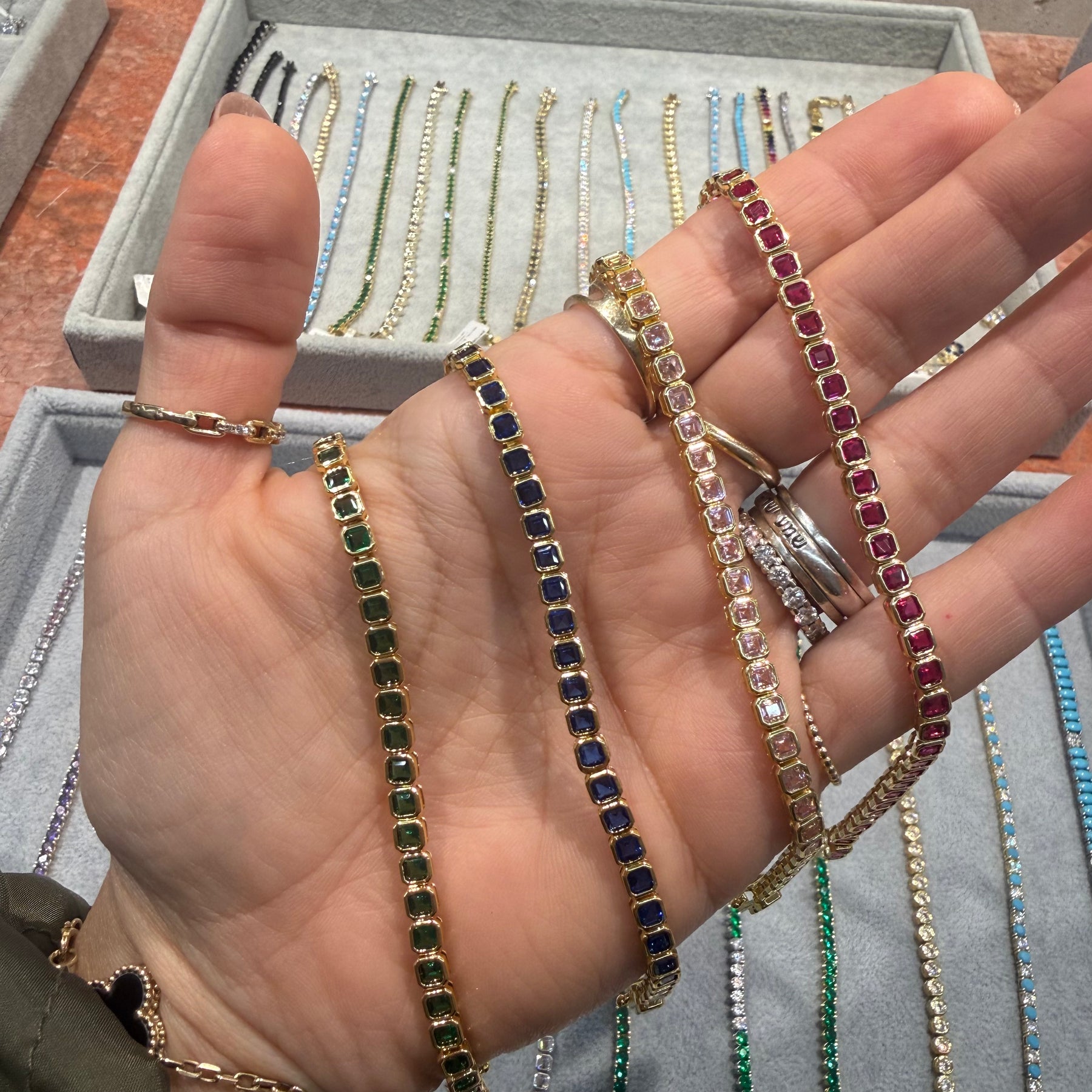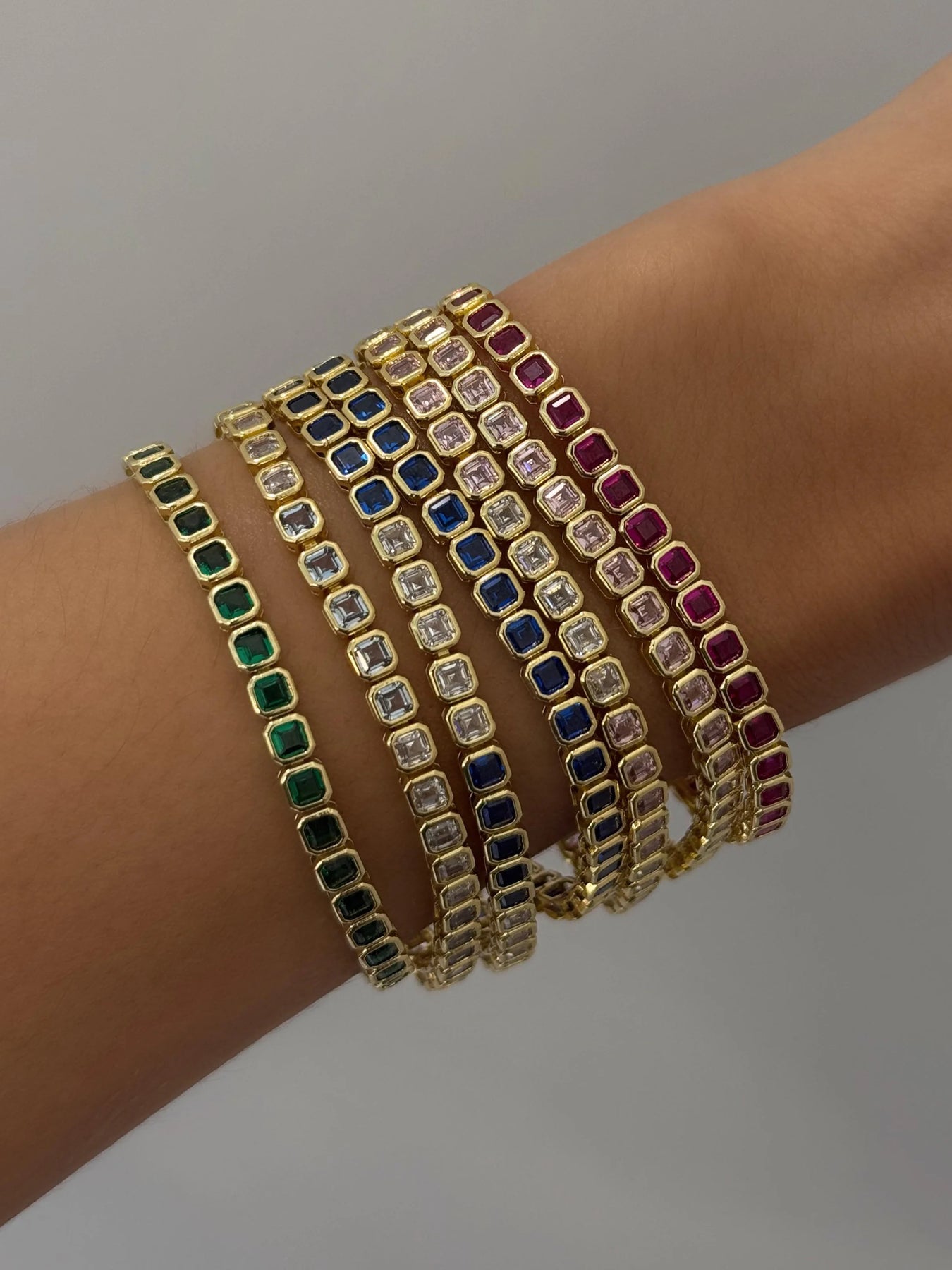 Ibiza Square Bezel Color CZ's Tennis Bracelet