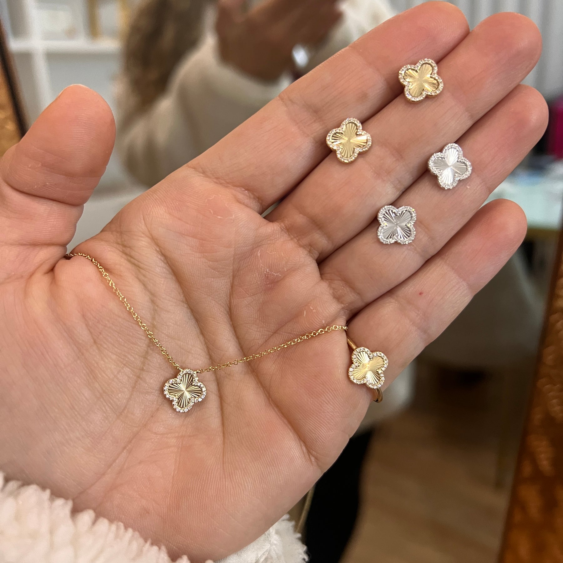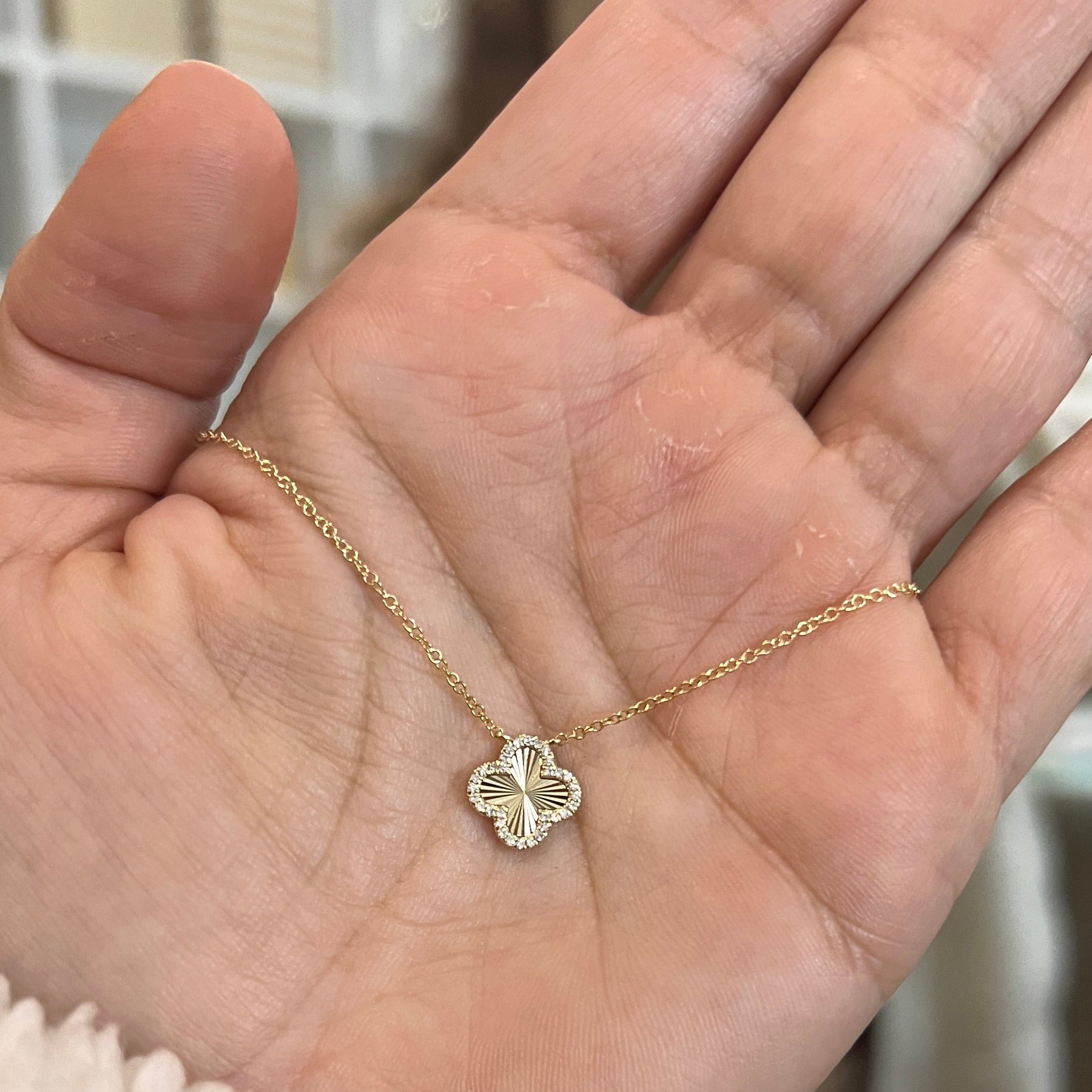 Diamond Halo Fluted Clover Necklace