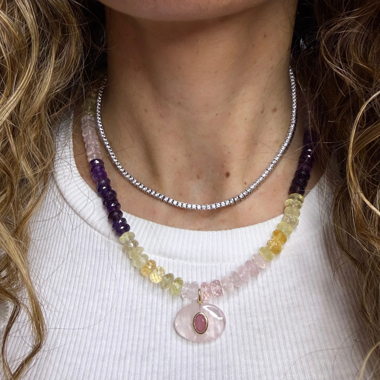 Pink Quartz and Ruby Mixed Multi Stone Beaded Necklace