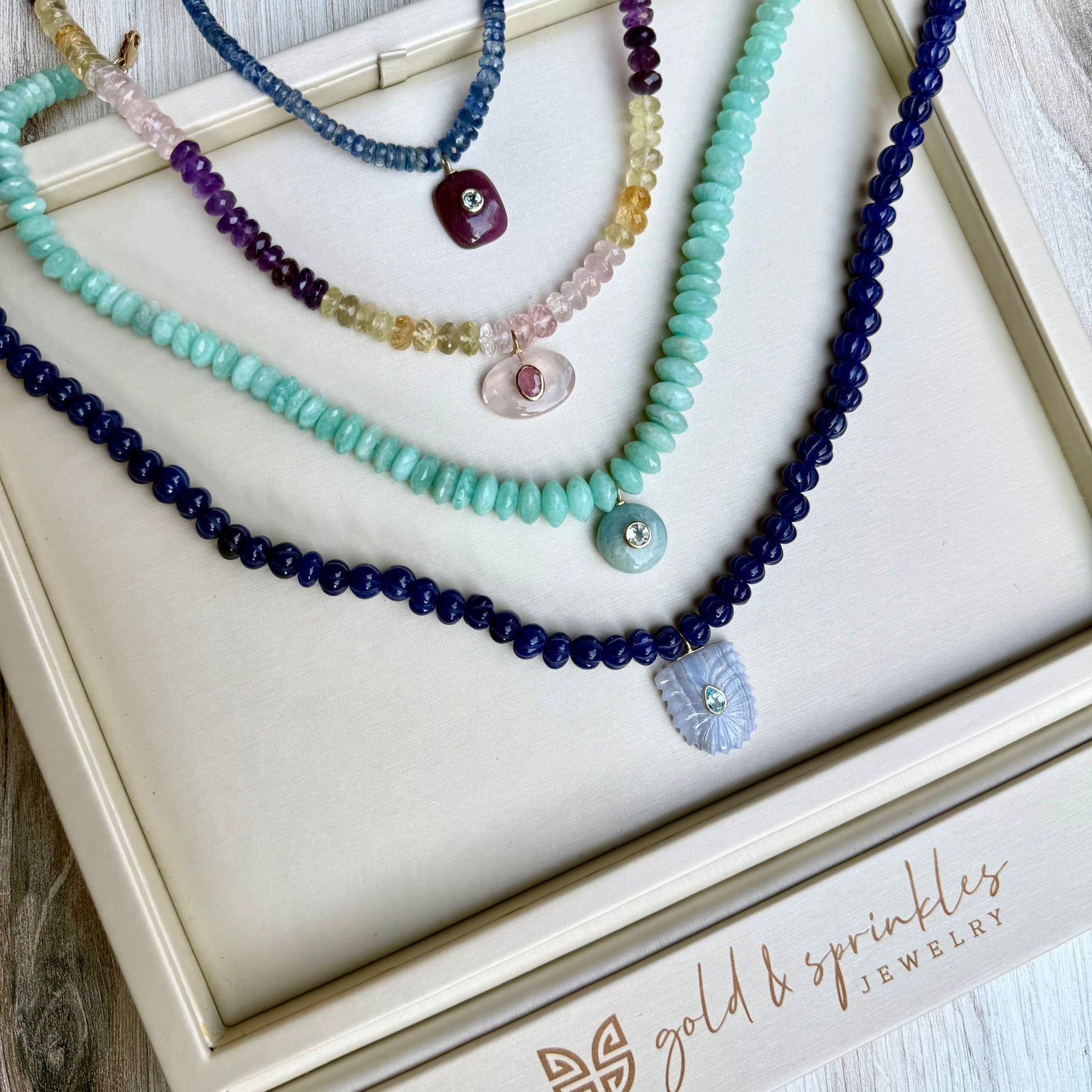 No two necklaces are alike: every bead carries its own natural variations, making your piece as individual as you are. Designed to be versatile, these necklaces transition effortlessly from casual to elegant, whether layered with your favorite chains or worn solo as a statement of natural beauty.