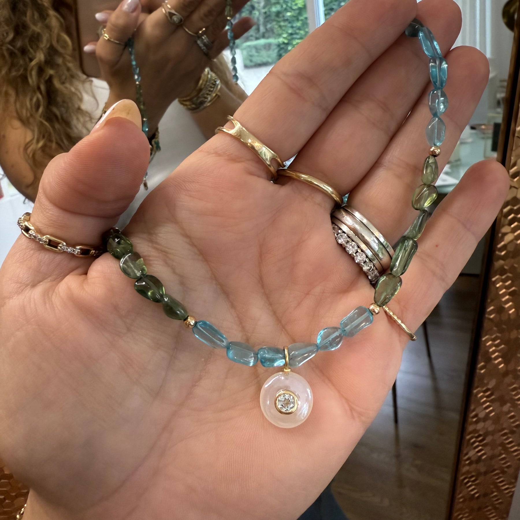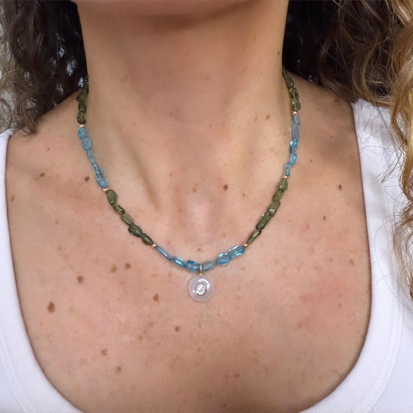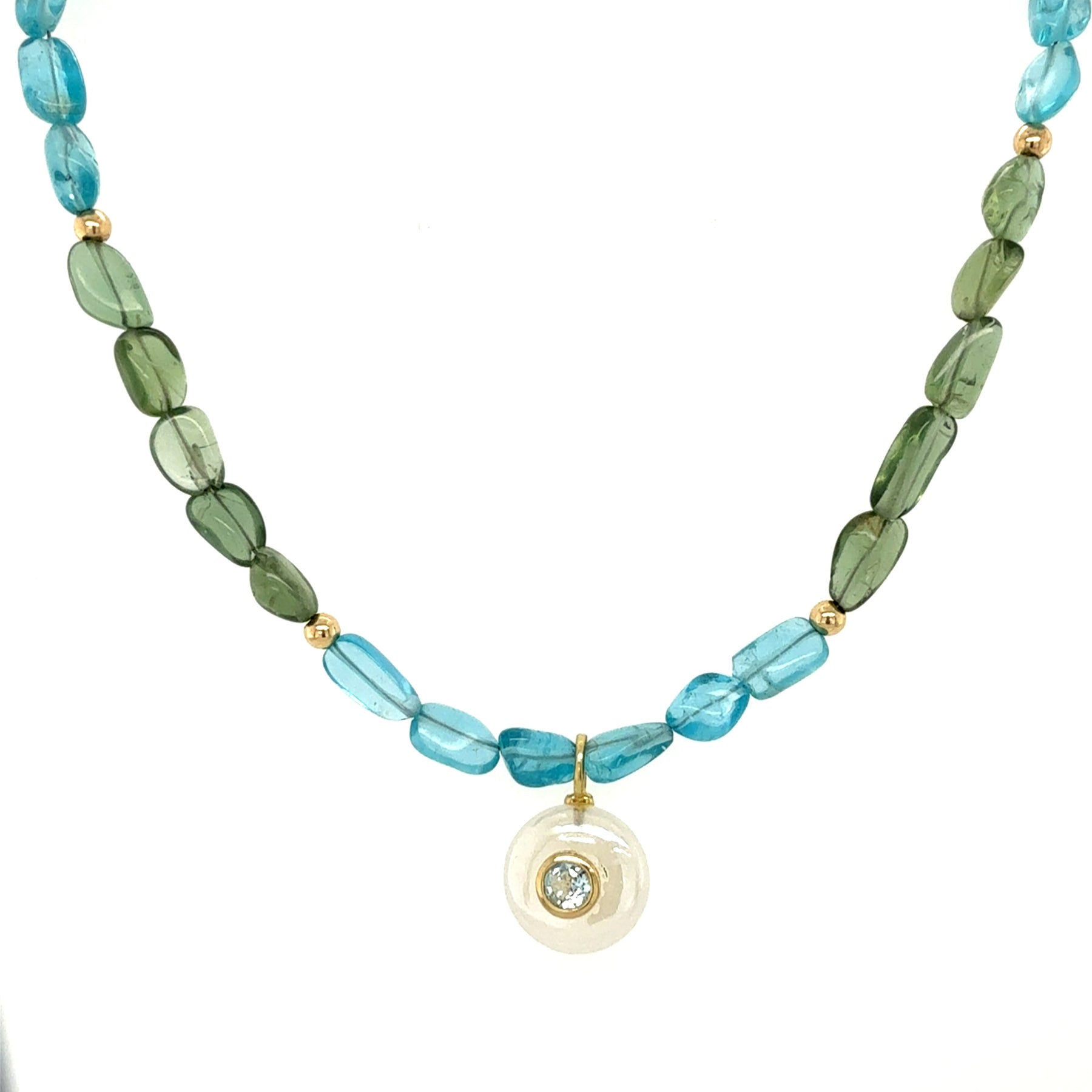 Moonstone and Blue Topaz Charm on Apatite Beaded Necklace