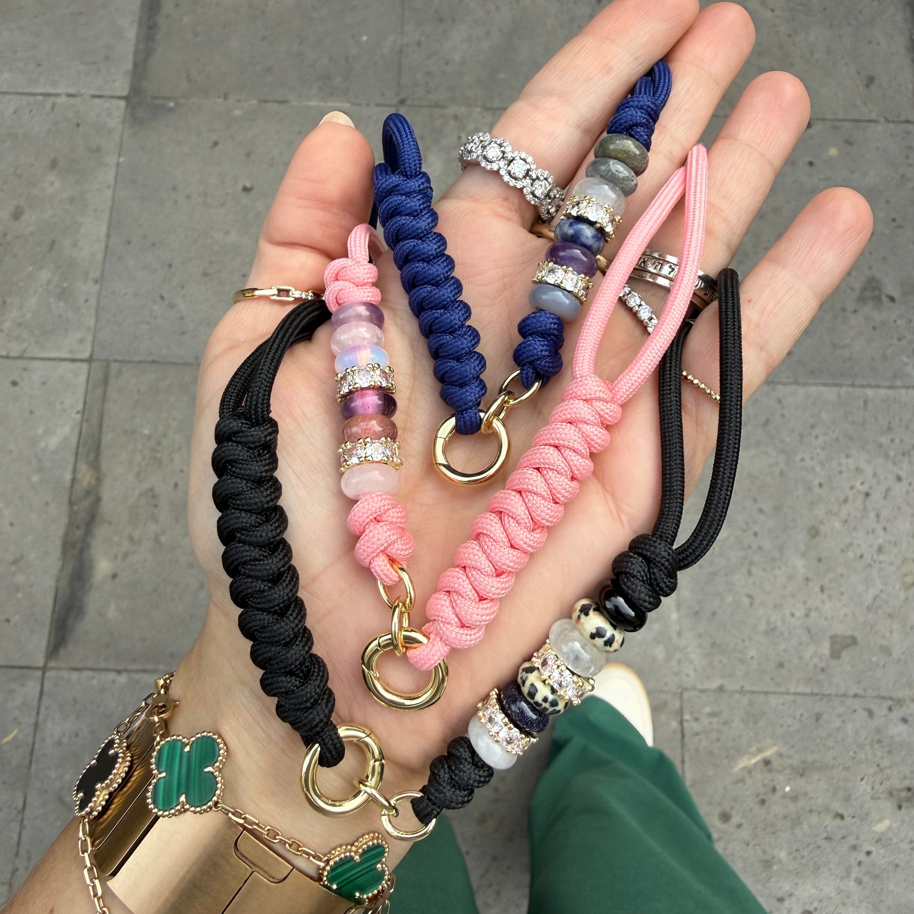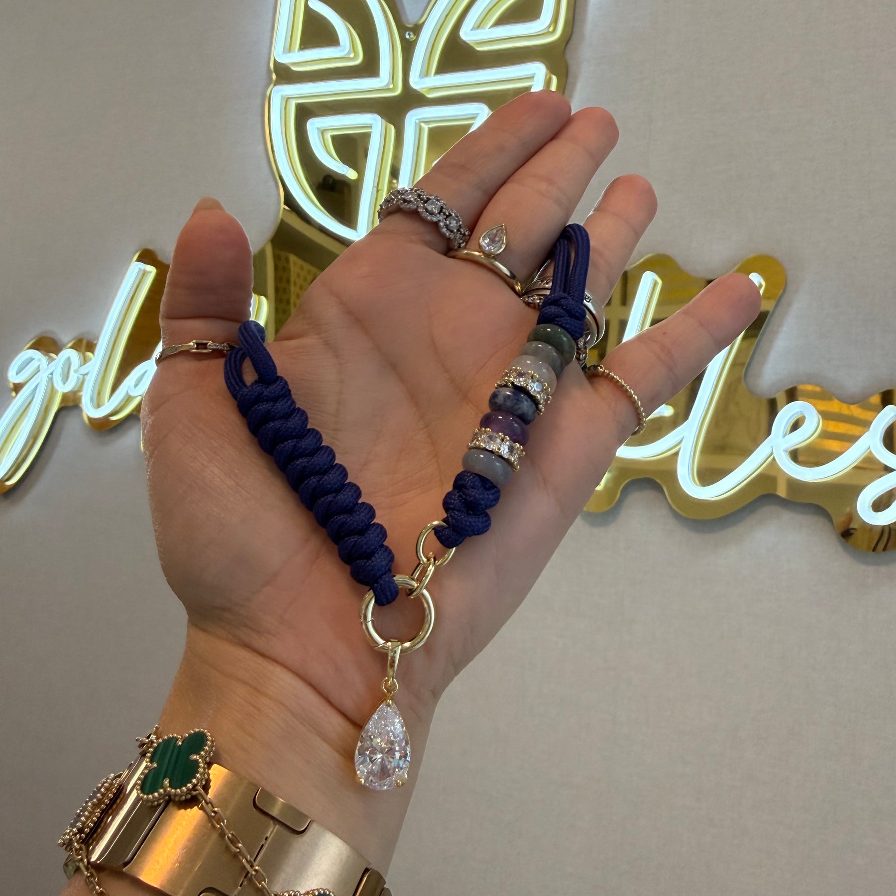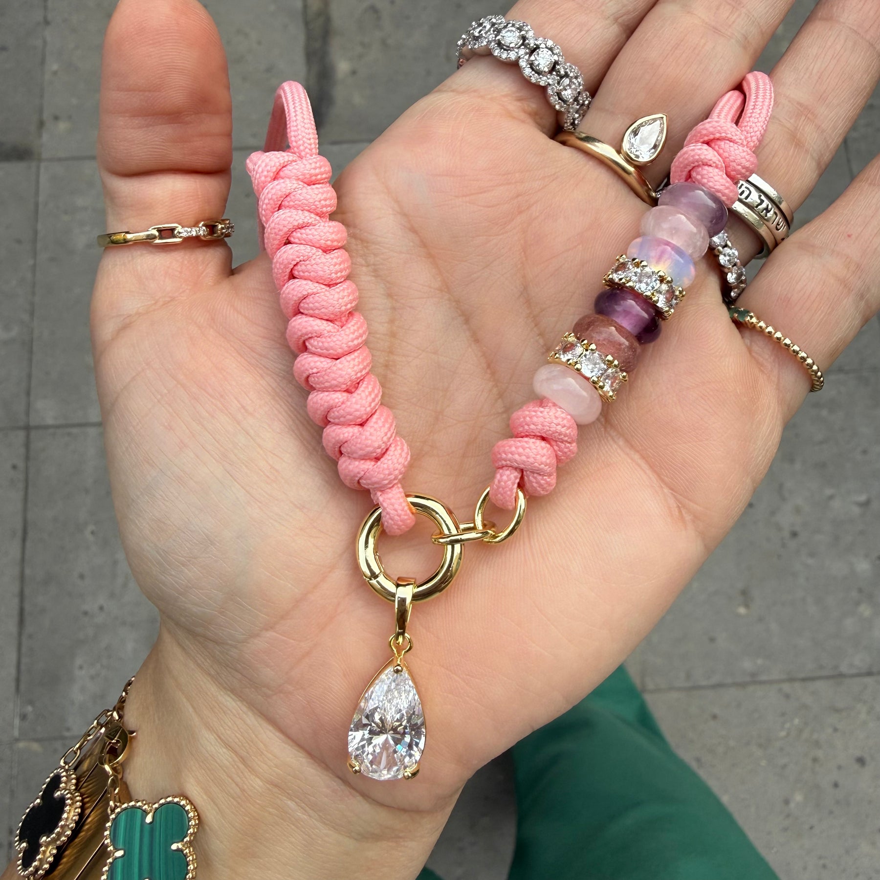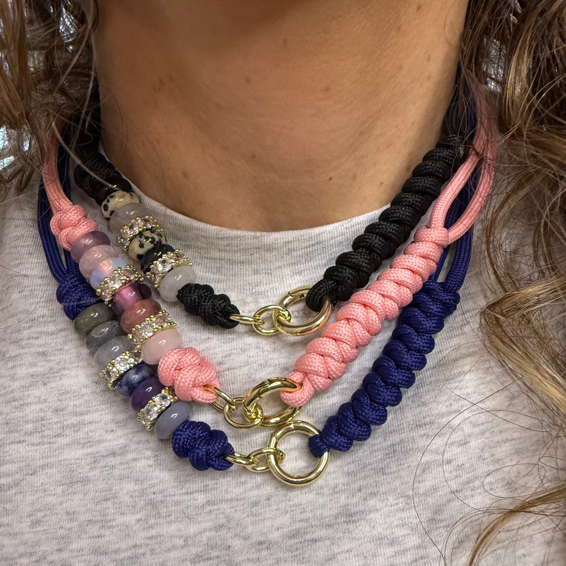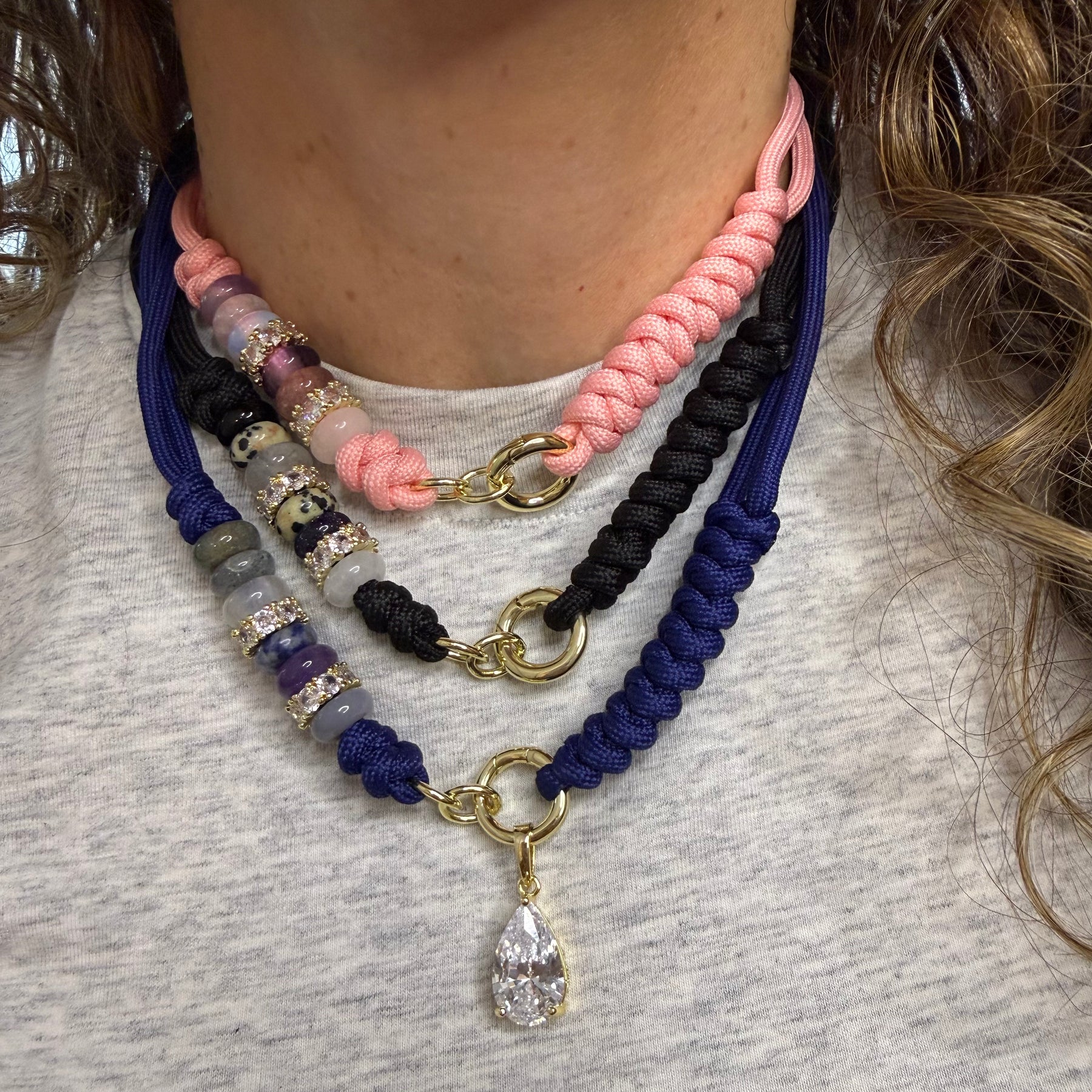 Gem Knot Rope Necklace with Charm Clasp