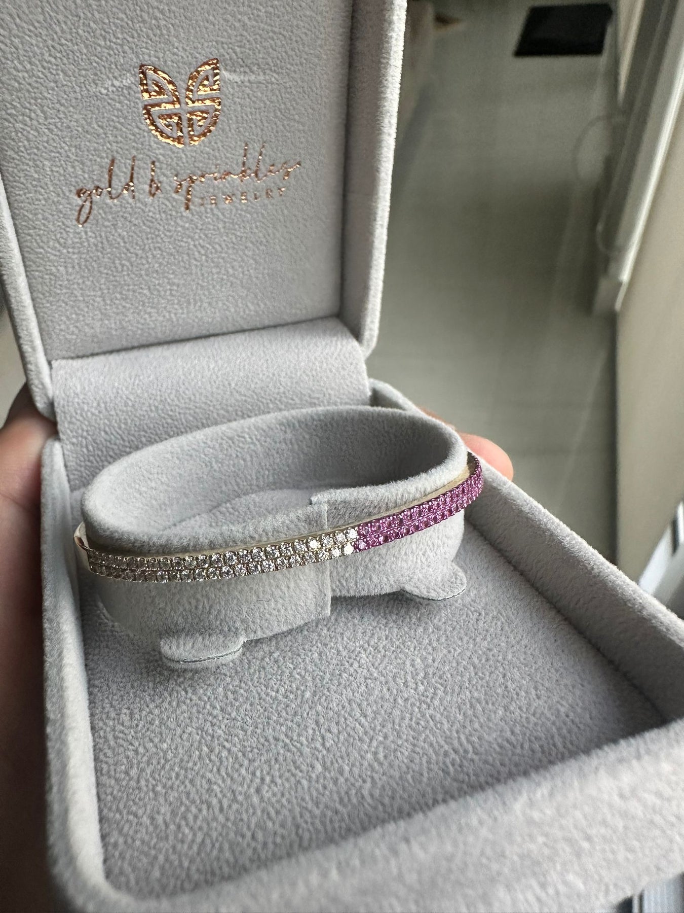 This double row bangle gives you the best of both worlds!!! The diamond side makes it more classic and formal while the gemstone side adds a pop of color and fun to your look! Great for everyday wear.