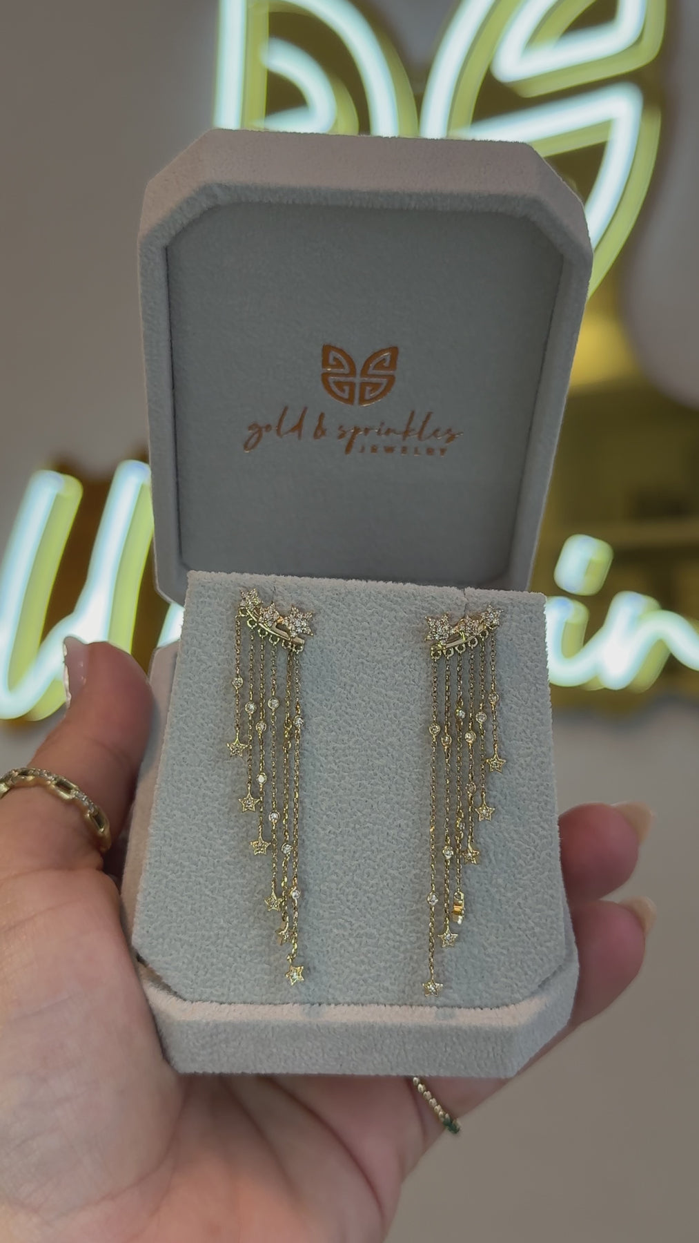Triple Star Studs with Removable Tassel Charm Earring Back