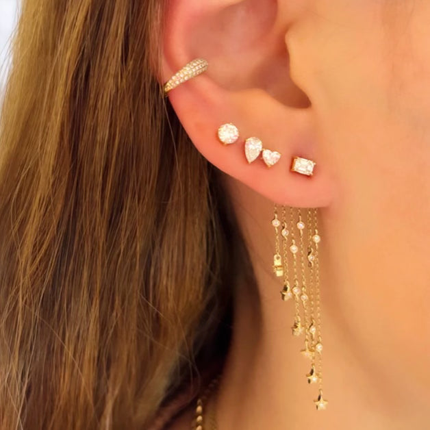 This star earring will be the most versatile piece on your ear party! Attach the tassel jacket charm to the included star stud o to any stud earrings of your choice to create a cool unique jewelry piece of your own. It's the perfect on-and-off piece to spice up your ear look. Perfect for everyday wear.