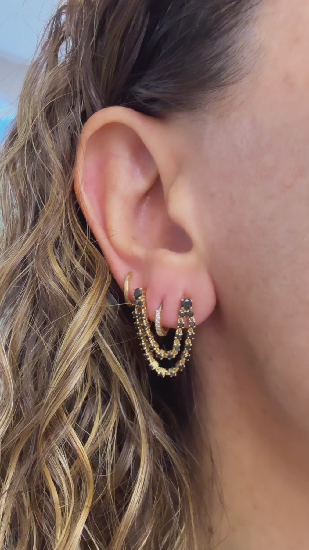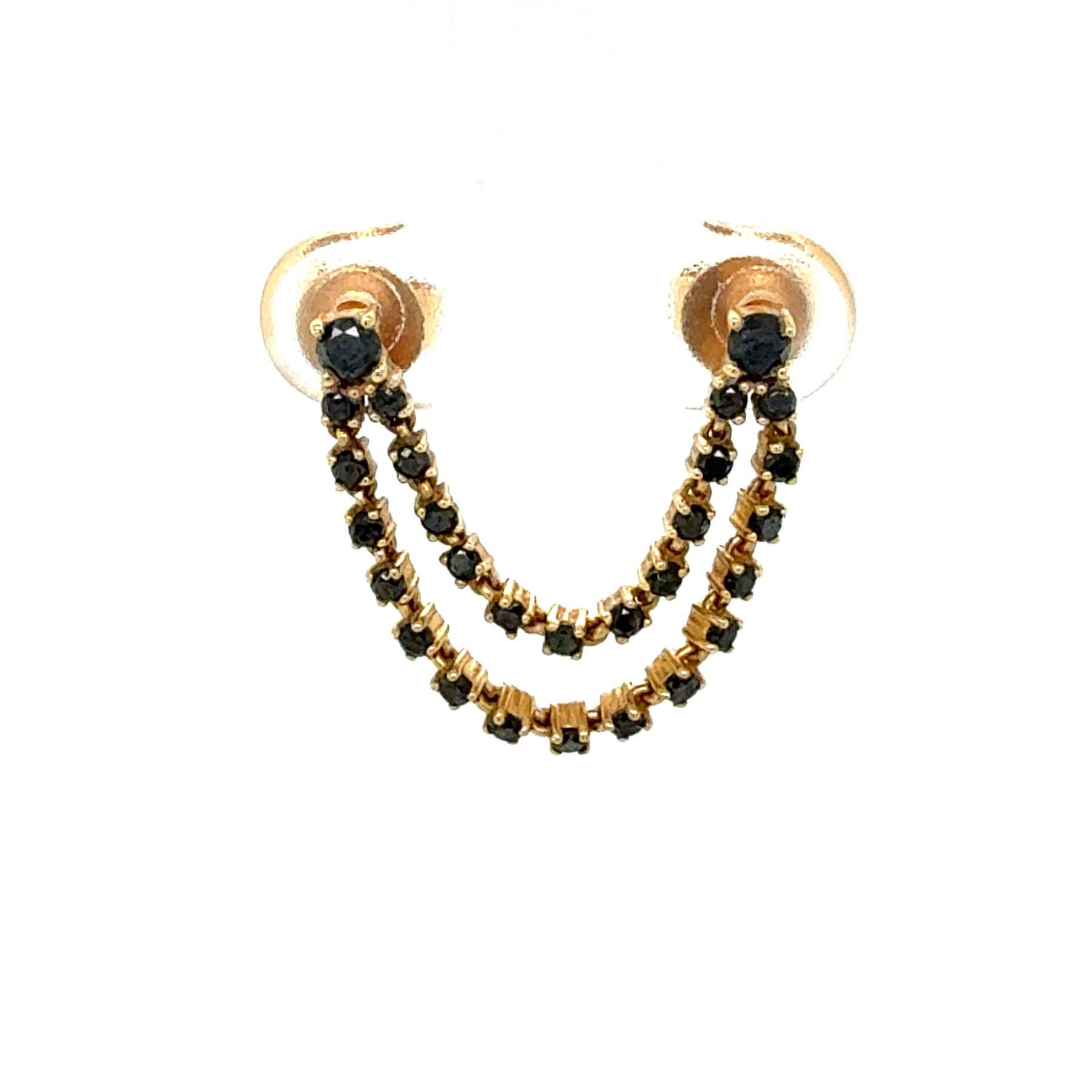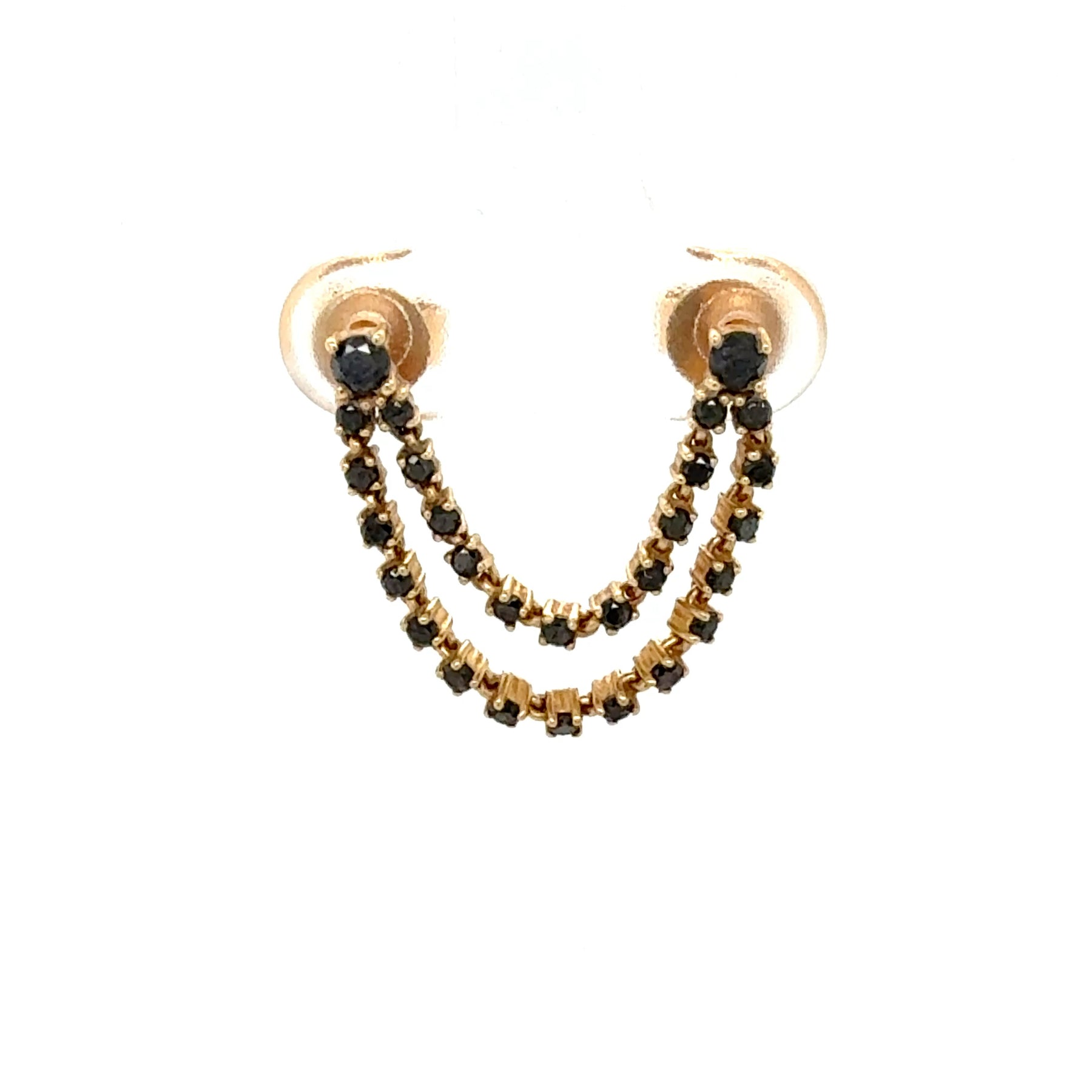 Double Piercing Black Diamond Double Row Chain Earring