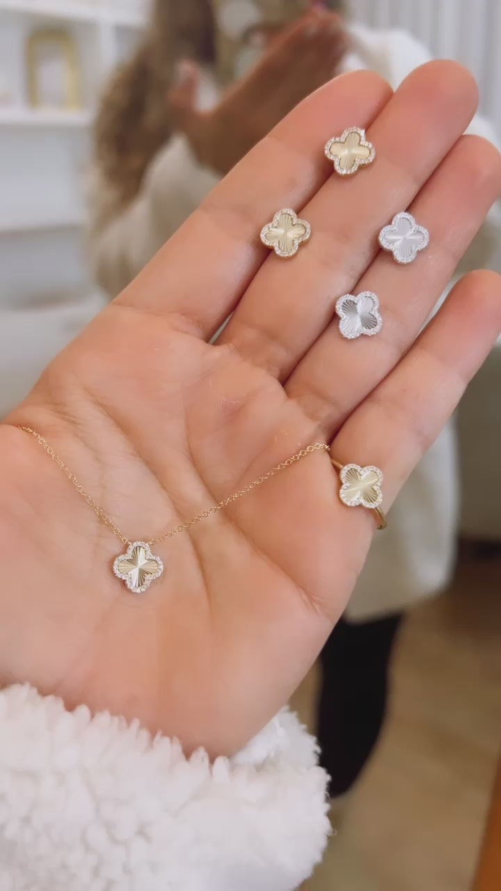 Diamond Halo Fluted Clover Studs