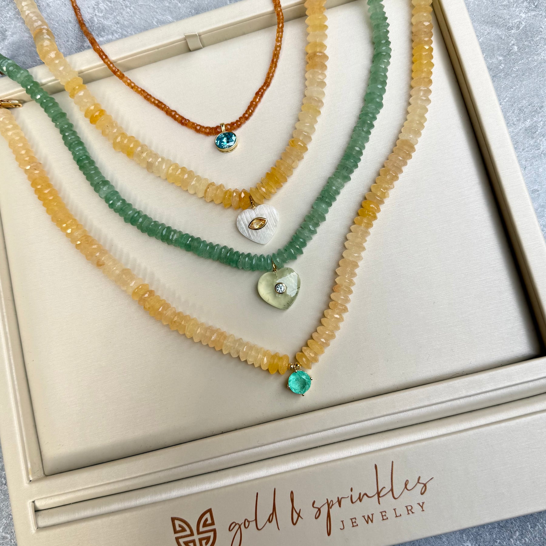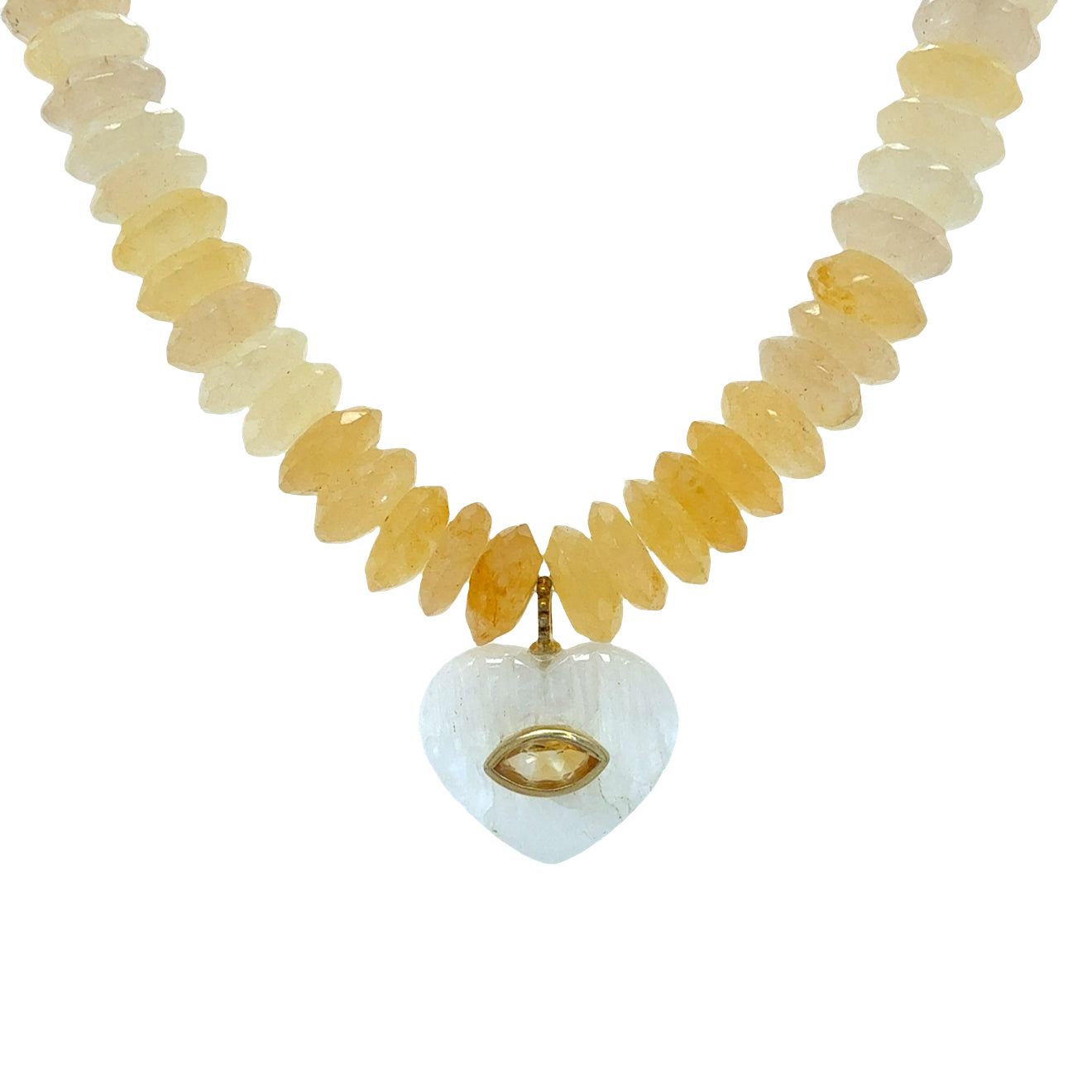 Moonstone and Citrine Charm on Yellow Aventurine Beaded Necklace